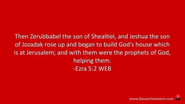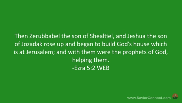 Then Zerubbabel the son of Shealtiel, and Jeshua the son of Jozadak rose up and began to build God’s house which is at Jerusalem; and with them were the prophets of God, helping them. -Ezra 5:2 WEB