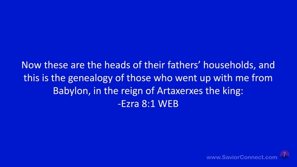 Now these are the heads of their fathers’ households, and this is the genealogy of those who went up with me from Babylon, in the reign of Artaxerxes the king: -Ezra 8:1 WEB