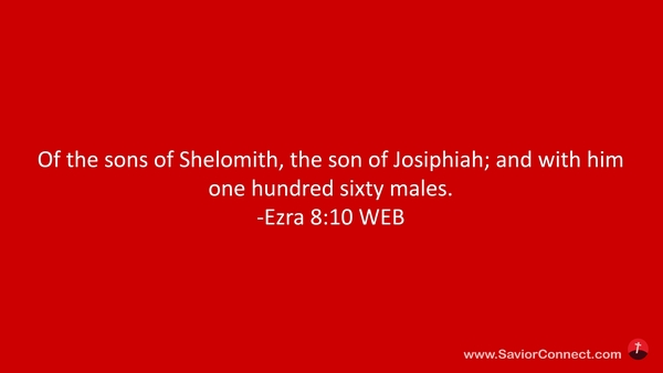 Of the sons of Shelomith, the son of Josiphiah; and with him one hundred sixty males. -Ezra 8:10 WEB