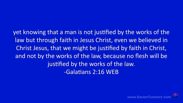 yet knowing that a man is not justified by the works of the law but through faith in Jesus Christ, even we believed in Christ Jesus, that we might be justified by faith in Christ, and not by the works of the law, because no flesh will be justified by the works of the law. -Galatians 2:16 WEB