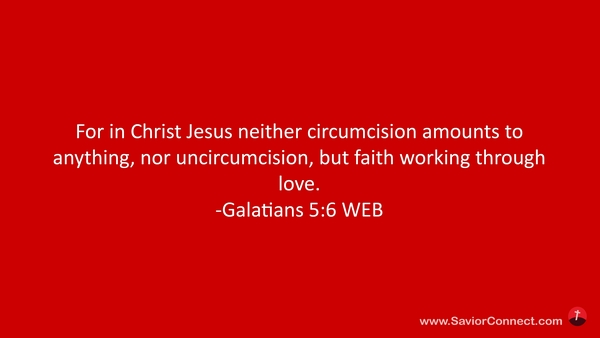 For in Christ Jesus neither circumcision amounts to anything, nor uncircumcision, but faith working through love. -Galatians 5:6 WEB