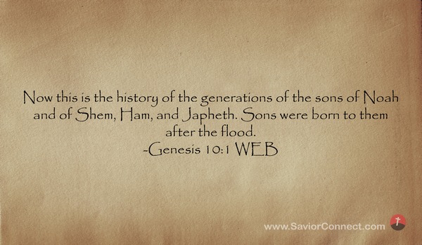 Now this is the history of the generations of the sons of Noah and of Shem, Ham, and Japheth. Sons were born to them after the flood. -Genesis 10:1 WEB