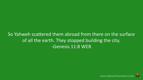 So Yahweh scattered them abroad from there on the surface of all the earth. They stopped building the city. -Genesis 11:8 WEB