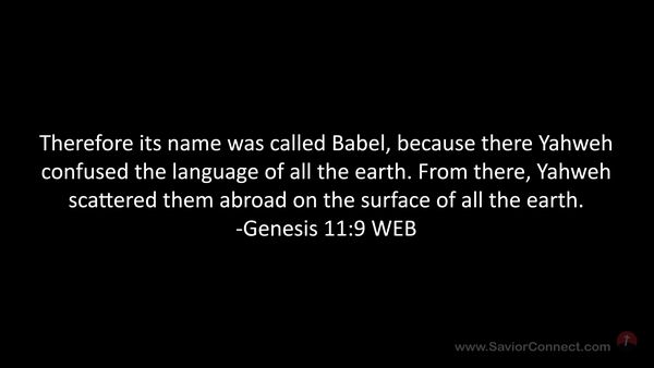 Therefore its name was called Babel, because there Yahweh confused the language of all the earth. From there, Yahweh scattered them abroad on the surface of all the earth. -Genesis 11:9 WEB
