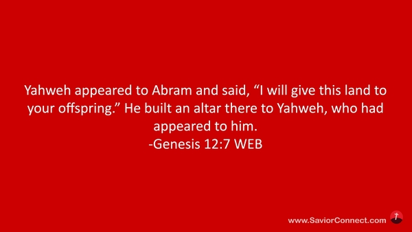 Yahweh appeared to Abram and said, “I will give this land to your offspring.” He built an altar there to Yahweh, who had appeared to him. -Genesis 12:7 WEB