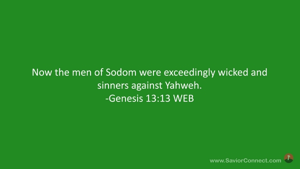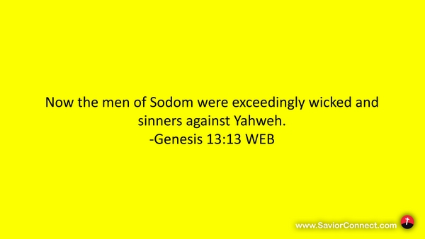 Now the men of Sodom were exceedingly wicked and sinners against Yahweh. -Genesis 13:13 WEB