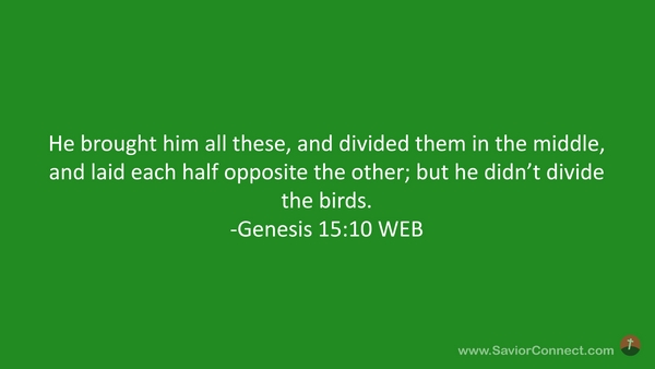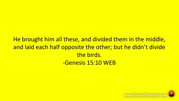 He brought him all these, and divided them in the middle, and laid each half opposite the other; but he didn’t divide the birds. -Genesis 15:10 WEB