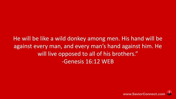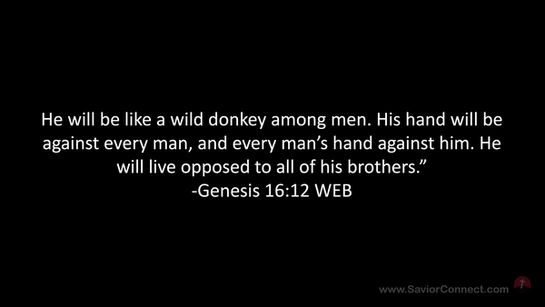 He will be like a wild donkey among men. His hand will be against every man, and every man’s hand against him. He will live opposed to all of his brothers.” -Genesis 16:12 WEB