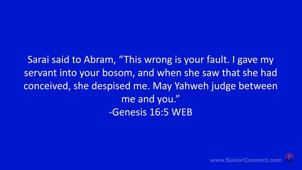 Sarai said to Abram, “This wrong is your fault. I gave my servant into your bosom, and when she saw that she had conceived, she despised me. May Yahweh judge between me and you.” -Genesis 16:5 WEB