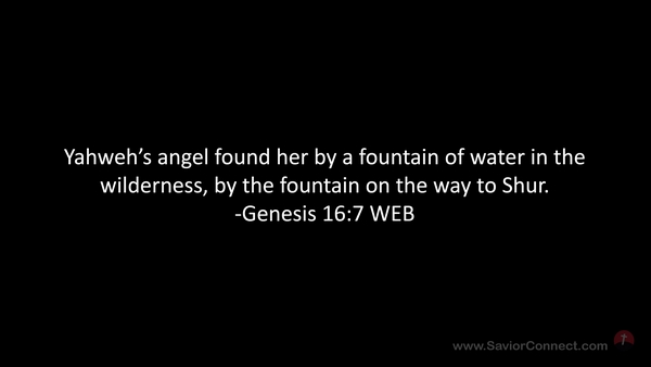 Yahweh’s angel found her by a fountain of water in the wilderness, by the fountain on the way to Shur. -Genesis 16:7 WEB