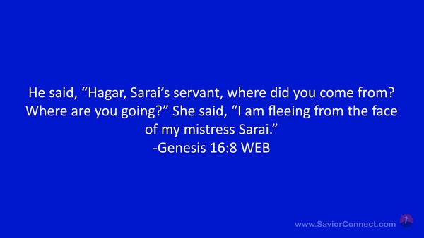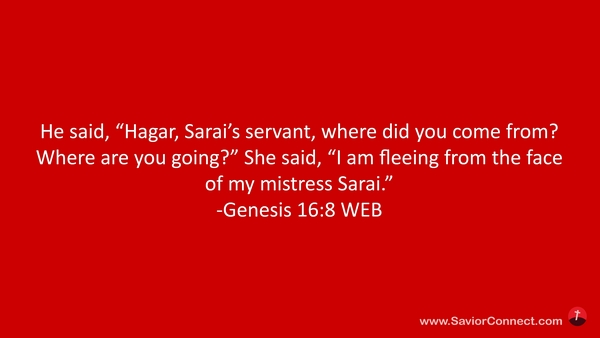 He said, “Hagar, Sarai’s servant, where did you come from? Where are you going?” She said, “I am fleeing from the face of my mistress Sarai.” -Genesis 16:8 WEB