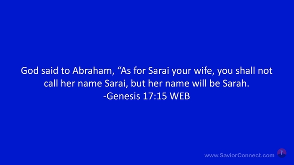 God said to Abraham, “As for Sarai your wife, you shall not call her name Sarai, but her name will be Sarah. -Genesis 17:15 WEB