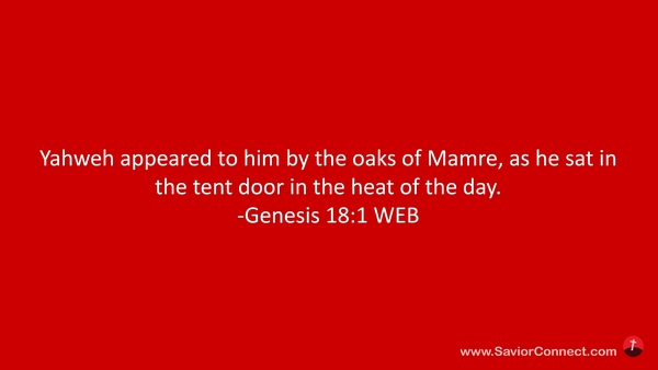 Yahweh appeared to him by the oaks of Mamre, as he sat in the tent door in the heat of the day. -Genesis 18:1 WEB