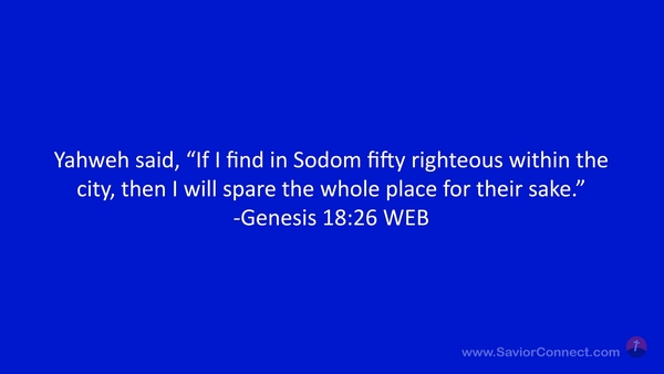 Yahweh said, “If I find in Sodom fifty righteous within the city, then I will spare the whole place for their sake.” -Genesis 18:26 WEB