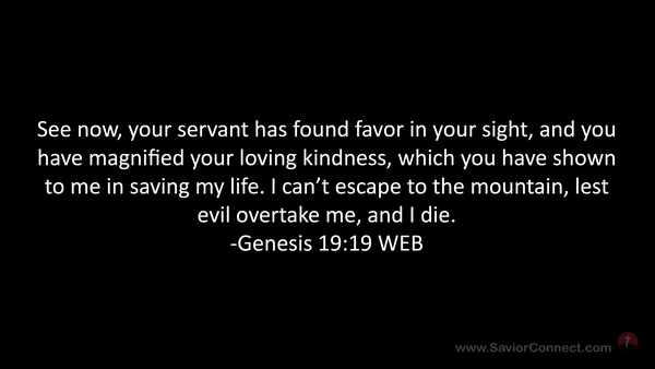 See now, your servant has found favor in your sight, and you have magnified your loving kindness, which you have shown to me in saving my life. I can’t escape to the mountain, lest evil overtake me, and I die. -Genesis 19:19 WEB