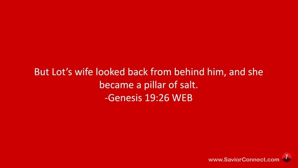 But Lot’s wife looked back from behind him, and she became a pillar of salt. -Genesis 19:26 WEB
