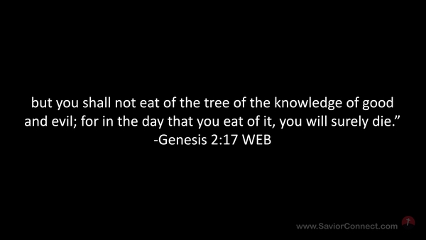 but you shall not eat of the tree of the knowledge of good and evil; for in the day that you eat of it, you will surely die.” -Genesis 2:17 WEB