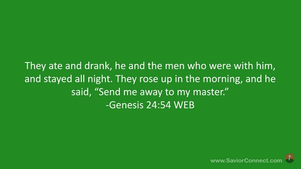 They ate and drank, he and the men who were with him, and stayed all night. They rose up in the morning, and he said, “Send me away to my master.” -Genesis 24:54 WEB