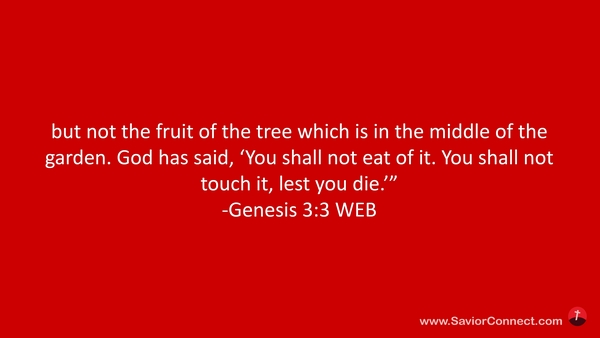 but not the fruit of the tree which is in the middle of the garden. God has said, 'You shall not eat of it. You shall not touch it, lest you die.’” -Genesis 3:3 WEB