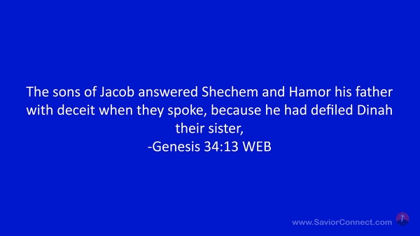 The sons of Jacob answered Shechem and Hamor his father with deceit when they spoke, because he had defiled Dinah their sister, -Genesis 34:13 WEB