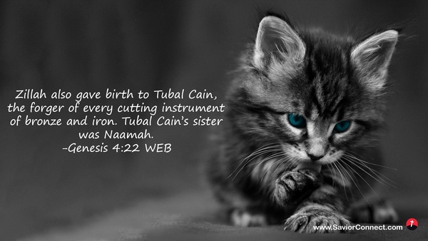 Zillah also gave birth to Tubal Cain, the forger of every cutting instrument of bronze and iron. Tubal Cain’s sister was Naamah. -Genesis 4:22 WEB