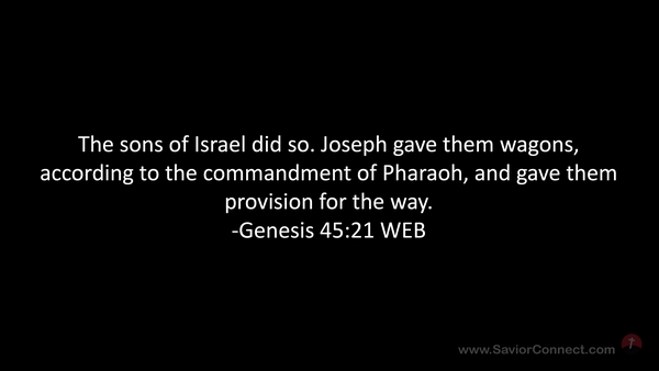 The sons of Israel did so. Joseph gave them wagons, according to the commandment of Pharaoh, and gave them provision for the way. -Genesis 45:21 WEB