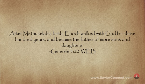 After Methuselah’s birth, Enoch walked with God for three hundred years, and became the father of more sons and daughters. -Genesis 5:22 WEB