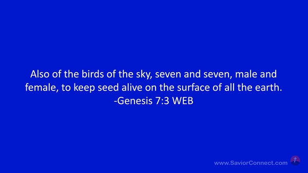 Also of the birds of the sky, seven and seven, male and female, to keep seed alive on the surface of all the earth. -Genesis 7:3 WEB