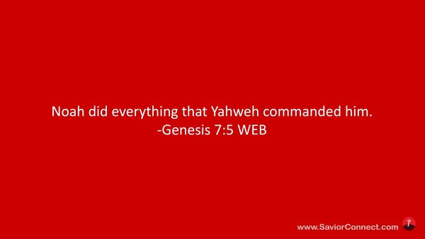 Noah did everything that Yahweh commanded him. -Genesis 7:5 WEB