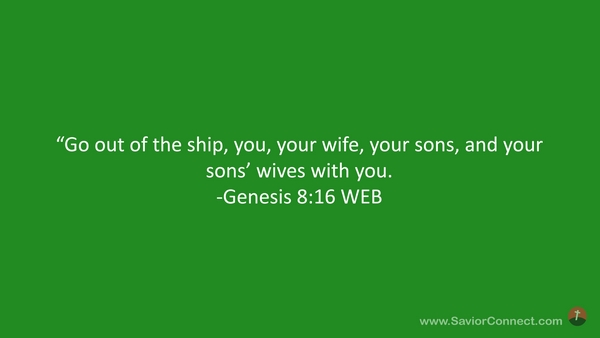 “Go out of the ship, you, your wife, your sons, and your sons’ wives with you. -Genesis 8:16 WEB