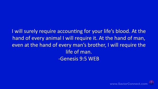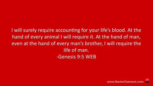 I will surely require accounting for your life’s blood. At the hand of every animal I will require it. At the hand of man, even at the hand of every man’s brother, I will require the life of man. -Genesis 9:5 WEB