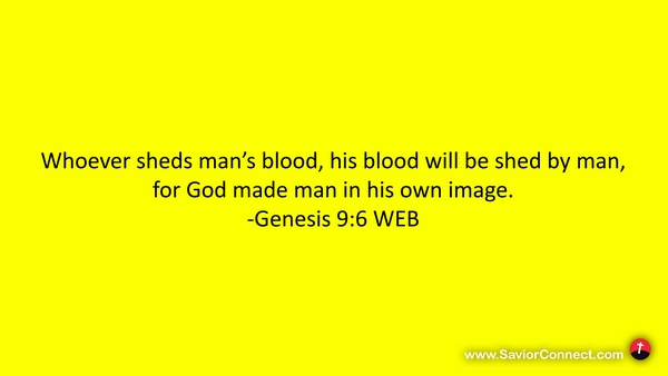 Whoever sheds man’s blood, his blood will be shed by man, for God made man in his own image. -Genesis 9:6 WEB