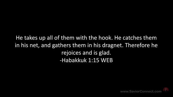 He takes up all of them with the hook. He catches them in his net, and gathers them in his dragnet. Therefore he rejoices and is glad. -Habakkuk 1:15 WEB