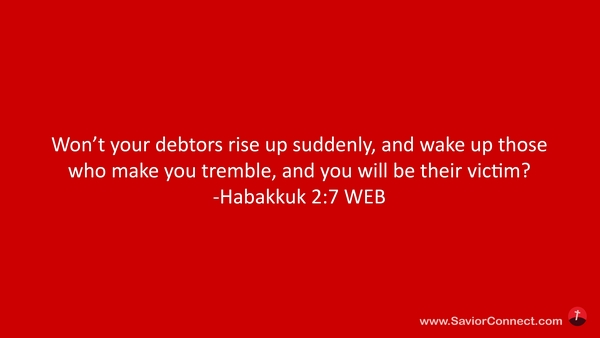 Won’t your debtors rise up suddenly, and wake up those who make you tremble, and you will be their victim? -Habakkuk 2:7 WEB