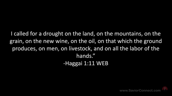 I called for a drought on the land, on the mountains, on the grain, on the new wine, on the oil, on that which the ground produces, on men, on livestock, and on all the labor of the hands.” -Haggai 1:11 WEB