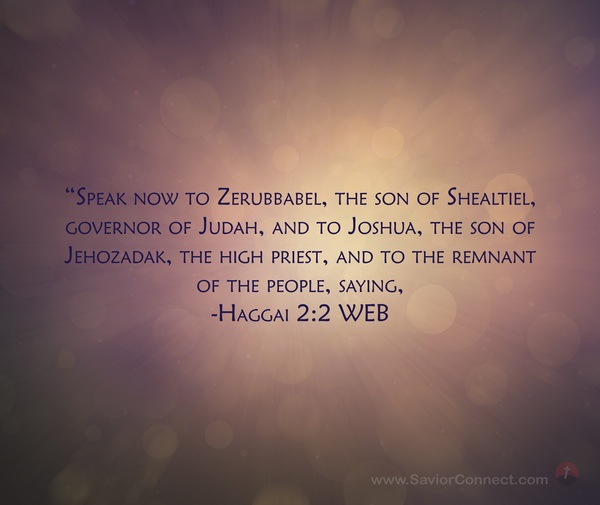 “Speak now to Zerubbabel, the son of Shealtiel, governor of Judah, and to Joshua, the son of Jehozadak, the high priest, and to the remnant of the people, saying, -Haggai 2:2 WEB