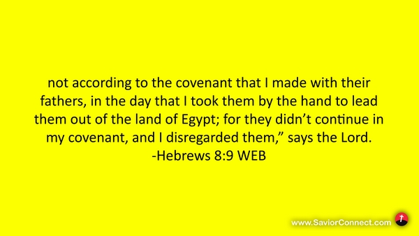 not according to the covenant that I made with their fathers, in the day that I took them by the hand to lead them out of the land of Egypt; for they didn’t continue in my covenant, and I disregarded them,” says the Lord. -Hebrews 8:9 WEB