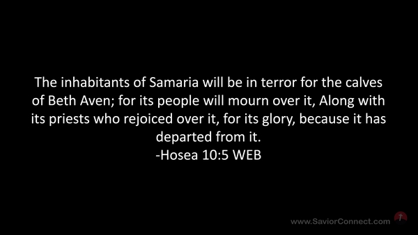 The inhabitants of Samaria will be in terror for the calves of Beth Aven; for its people will mourn over it, Along with its priests who rejoiced over it, for its glory, because it has departed from it. -Hosea 10:5 WEB