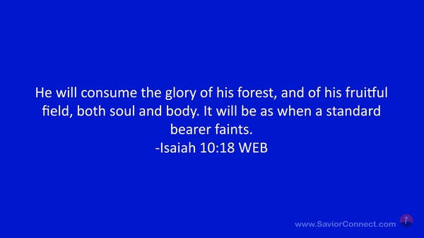 He will consume the glory of his forest, and of his fruitful field, both soul and body. It will be as when a standard bearer faints. -Isaiah 10:18 WEB