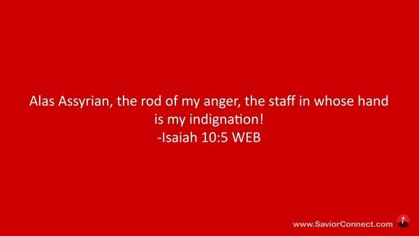 Alas Assyrian, the rod of my anger, the staff in whose hand is my indignation! -Isaiah 10:5 WEB