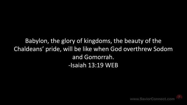 Babylon, the glory of kingdoms, the beauty of the Chaldeans’ pride, will be like when God overthrew Sodom and Gomorrah. -Isaiah 13:19 WEB