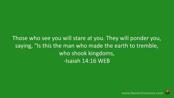 Those who see you will stare at you. They will ponder you, saying, “Is this the man who made the earth to tremble, who shook kingdoms, -Isaiah 14:16 WEB