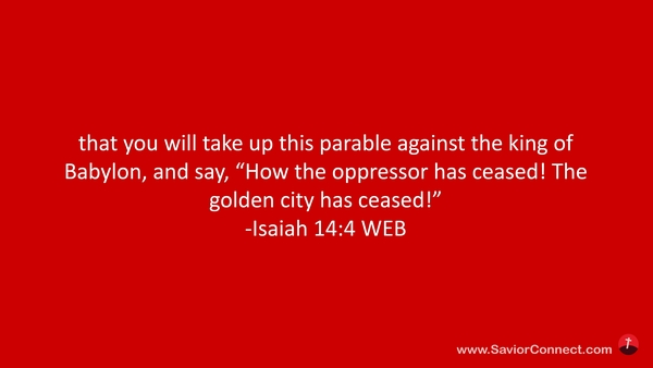 that you will take up this parable against the king of Babylon, and say, “How the oppressor has ceased! The golden city has ceased!” -Isaiah 14:4 WEB