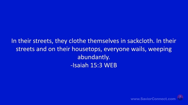 In their streets, they clothe themselves in sackcloth. In their streets and on their housetops, everyone wails, weeping abundantly. -Isaiah 15:3 WEB