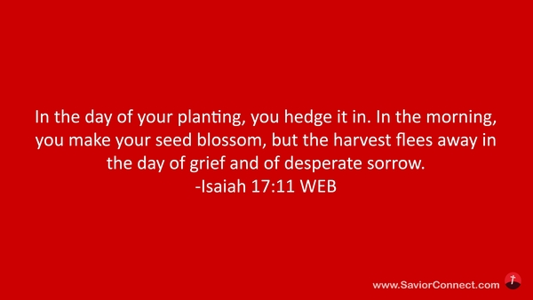 In the day of your planting, you hedge it in. In the morning, you make your seed blossom, but the harvest flees away in the day of grief and of desperate sorrow. -Isaiah 17:11 WEB