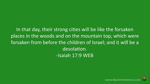 In that day, their strong cities will be like the forsaken places in the woods and on the mountain top, which were forsaken from before the children of Israel; and it will be a desolation. -Isaiah 17:9 WEB