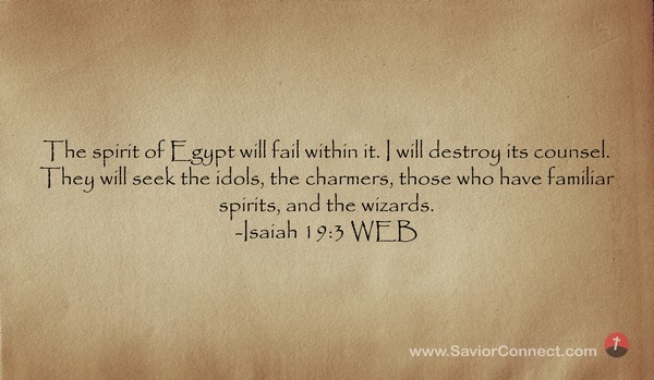 The spirit of Egypt will fail within it. I will destroy its counsel. They will seek the idols, the charmers, those who have familiar spirits, and the wizards. -Isaiah 19:3 WEB