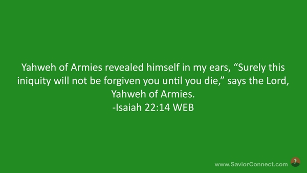 Yahweh of Armies revealed himself in my ears, “Surely this iniquity will not be forgiven you until you die,” says the Lord, Yahweh of Armies. -Isaiah 22:14 WEB