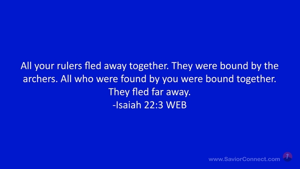 All your rulers fled away together. They were bound by the archers. All who were found by you were bound together. They fled far away. -Isaiah 22:3 WEB