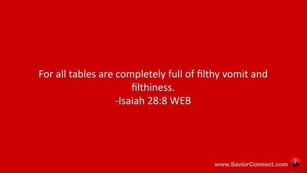 For all tables are completely full of filthy vomit and filthiness. -Isaiah 28:8 WEB
